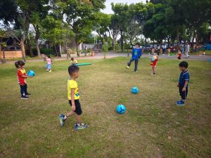 每日安排各類大肌肉運動,從徒手遊戲到運動器材,讓幼兒享受挑戰樂趣,促進身體動作與健康發展。